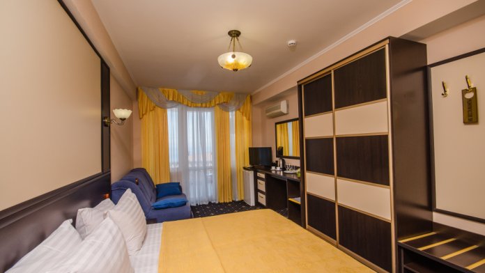 Номера выходят на северную сторону. Для комфортного отдыха вдвоем номер располагает всем необходимым. Это балкон, кондиционер для создания прохлады, полный пакет телеканалов.