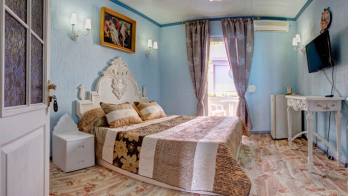 Каждый номер выполнен в различных стилях, оснащен беспроводным интернетом, спутниковым телевидением, кондиционером, феном, сейфом, холодильником и ванной комнатой. Балконы оформлены удобной садовой мебелью, украшены мраморными статуями.