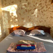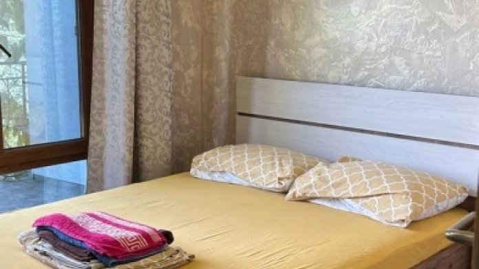 Солнечная сторона, собственный балкон со столиком и стульями, всегда есть возможность посидеть на солнце, спрятаться в тени виноградной лозы . Полностью оборудована для проживания, с собственной кухней (холодильник, плита, чайник, раковина, приборы, посуда). При заселении предоставляется посуда, постельное бельё, полотенца, средства гигиены.