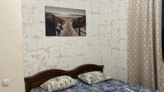 Спальные места: двуспальная кровать 160х200, кресло-кровать 80х190. При заселении предоставляется посуда, постельное бельё, полотенца, средства гигиены.