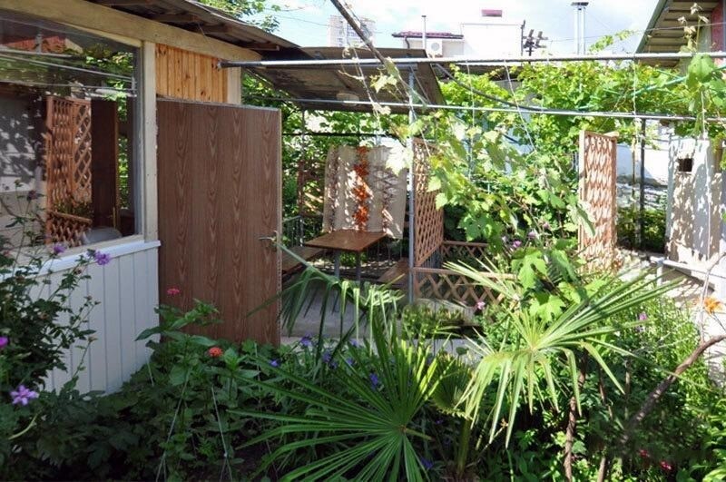 Провели две недели на втором этаже гостевого дома в четырёхместном номере с кухней на террасе. С первого взгляда влюбилась в кухню — завтракать и обедать с видом на голубое небо и плетистую розу было настоящим удовольствием. В номере было всё необходимое, всё работало исправно, продуманы даже мелочи — приятно удивил небольшой презент в виде шоколадки. Хозяйки, Людмила и Галина, были очень внимательными и всегда готовы помочь. Очень понравился зелёный двор и наличие парковки. До моря удобно дойти пешком, всё рядом. Пляж чистый, море прекрасное. Рядом магазины, рынок, дельфинарий и экскурсионные точки. Очень рекомендую это чудесное место!