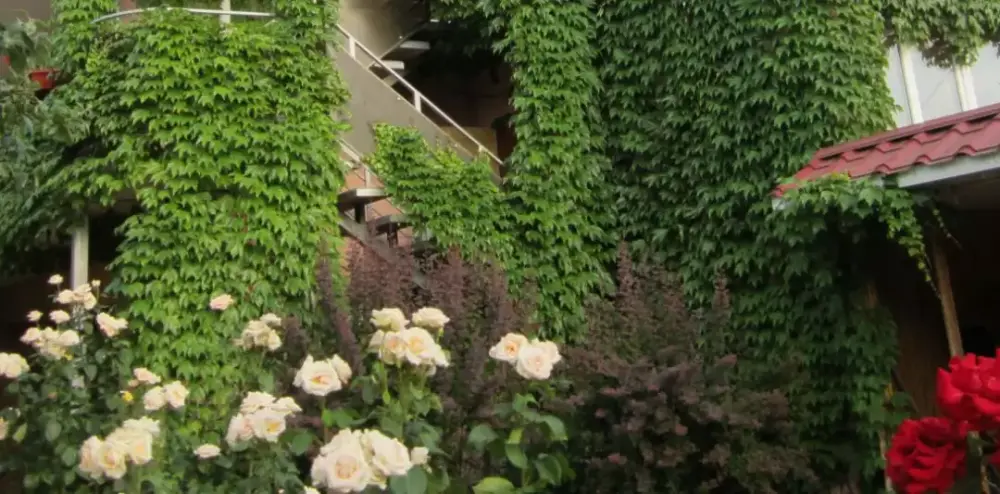 На территории есть вместительная беседка с большим плазменным телевизором для совместного времяпровождения, приёма пищи, просмотра спортивных трансляций, художественных фильмов, детских мультфильмов и других телепередач. Рядом находится мангал с принадлежностями для приготовления шашлыков и барбекю. Также имеется терраса для загара днём, любования звёздным небом ночью и окрестными пейзажами круглосуточно. На частной охраняемой стоянке автотуристам можно удобно и безопасно разместить свой автомобиль. В полном распоряжении гостей отеля находится общая кухня с газовой плитой, микроволновой печью, набором необходимой для приготовления и потребления пищи посуды.