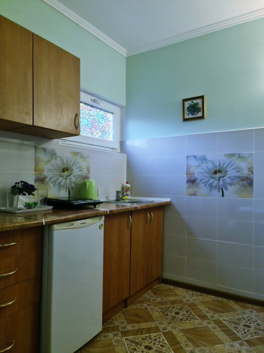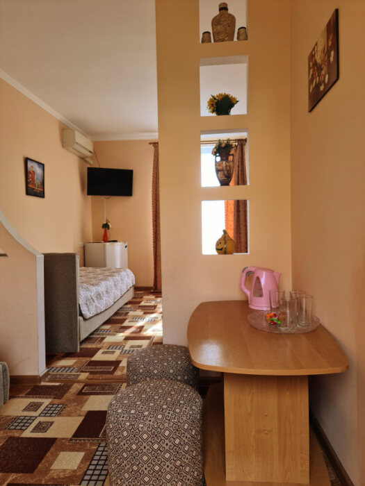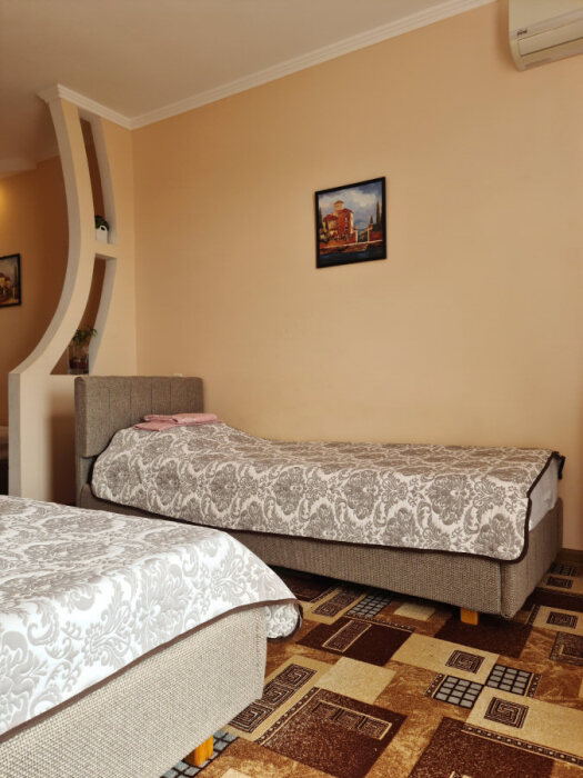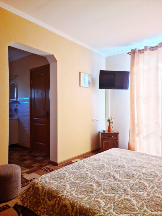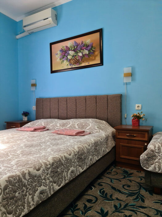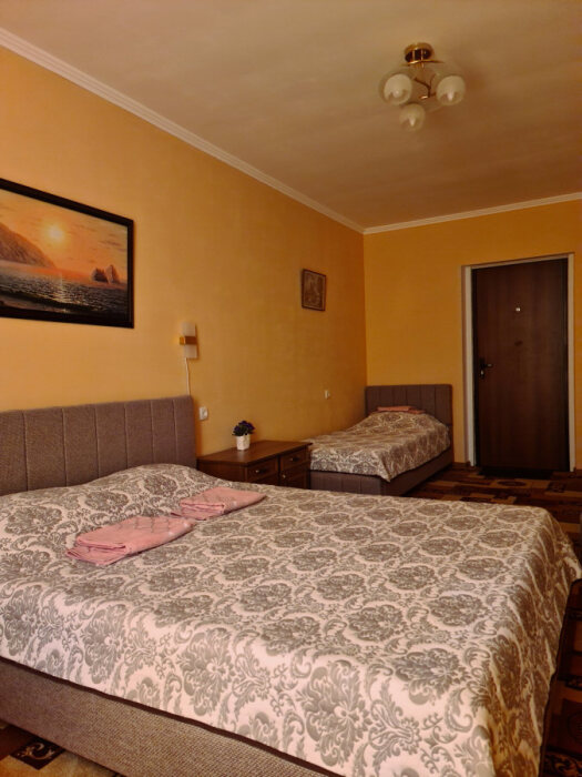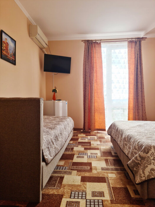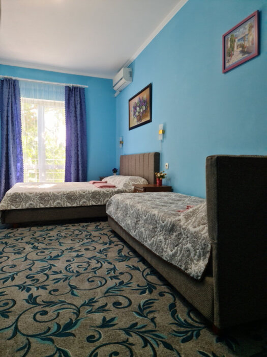Номерной фонд отеля составляют номера со всеми удобствами: необходимая мебель, постельное бельё и полотенца, холодильник, кондиционер, электрочайник, поднос со стаканами, кабельное телевидение, беспроводной интернет, душевая кабина, фен, умывальник, туалет, горячая и холодная вода круглосуточно. С балконов номеров 2-го и 3-го этажей открываются прекрасные виды на море и окружающие горы. В улучшенных номерах есть собственная небольшая кухня.