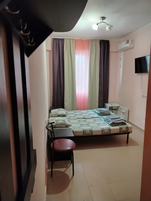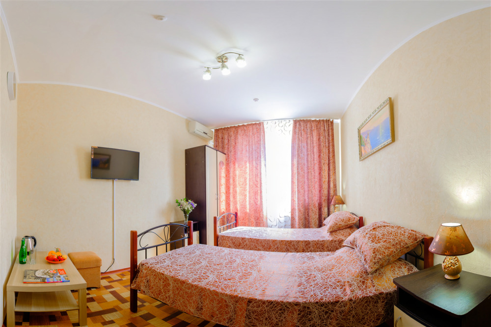 Предложенная картинка номеров совершенно не соответствует действительности.Маленькая комнатка где стоят две кровати и стул. Ни шкафов, ни столов, ни стаканов, ни чайника и т.д. Чемодан с вещами можно разместить только под кроватью.