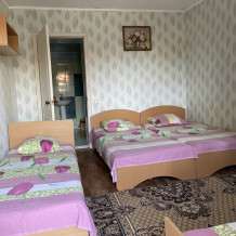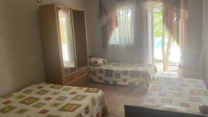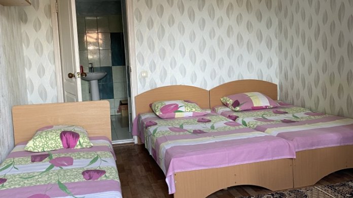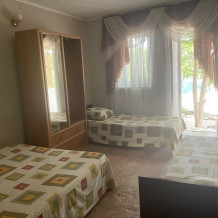 В наличии есть 2,3,4-местные номера с удобствами, кондиционерами, холодильником и телевизором (частично). Кухня на территории, мангал, услуги трансфера. Номера с видом на море, беседки, замечательная озеленённая территория.