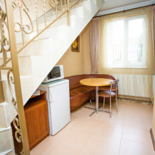 Данные помещения находятся на 1 этаже с лоджией и на 3 этаже с балконом, имеют отдельный вход.В номере есть сейф,утюг и гладильная доска.