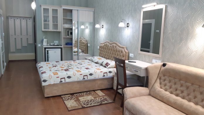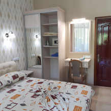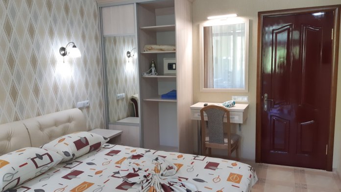 Номер на 1 этаже с беседкой возле номера и номер на 3 этаже с балконом. Номера с отдельным входом.В номере есть сейф,утюг и гладильная доска.