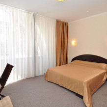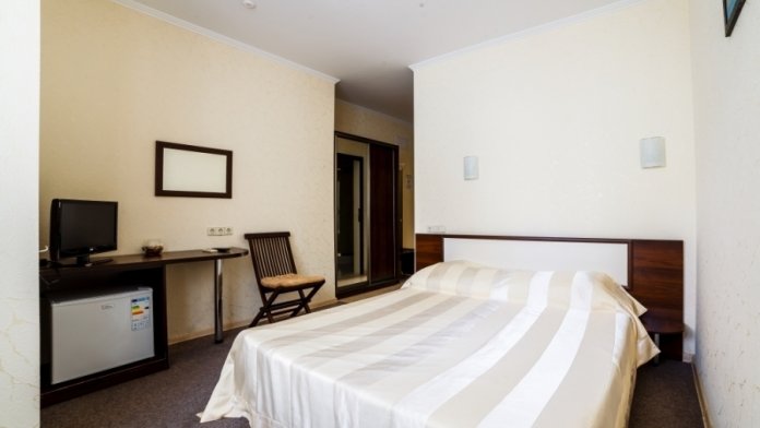 В номере есть все необходимое - телевизор, холодильник, кондиционер, фен, санузел, просторная кровать, шкаф, письменный стол. Экономом этот номер считается только из-за своей небольшой площади(всего 15 м.кв).