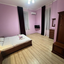 В номере: санузел (унитаз, биде, ванна,) ТВ, холодильник, кондиционер, двуспальная кровать, чайник, набор мебели, лоджия 17 кв.м.