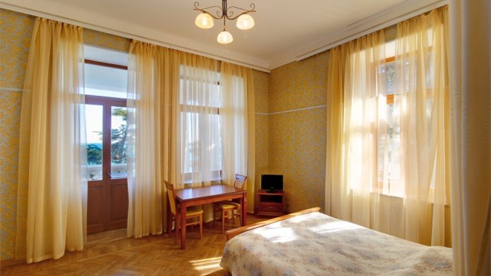 Гостиничный комплекс состоит из главного корпуса - памятника архитектуры начала XX века, где есть номера с большими балконами и красивыми видами, а также двух аэрариев (климатопавильонов) над пляжем, где бюджетные номера с панорамным видом на море, гостевого дома на берегу моря и двух кафе: «Розмарин» и вегетарианского кафе. Мы предлагаем доступные цены и каждый гость может выбрать оптимальный для себя номер по стоимости, фото и характеристикам.