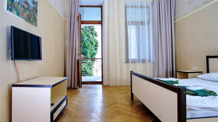 Однокомнатный уютный номер, расположенный в главном корпусе в 20 метрах от моря. Номера, расположенные на 1 и 2 этажах имеют балкон (11 кв. м.) или небольшую террасу с видом на парк или горы.