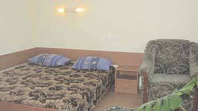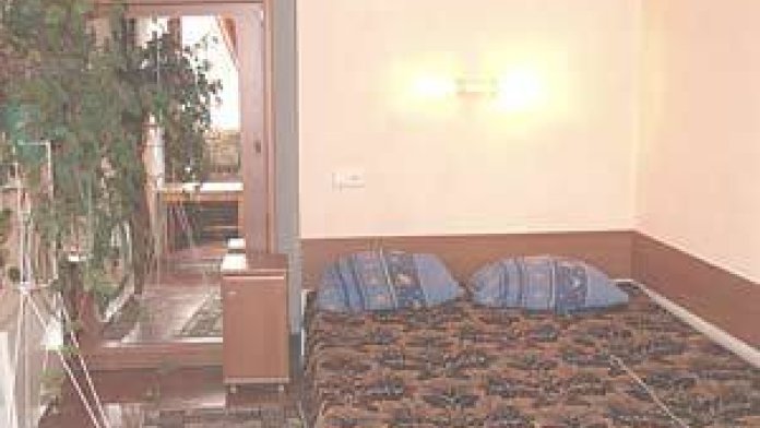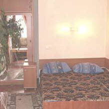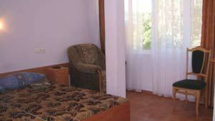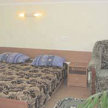 В номере: кровати с ортопедическими матрацами, прикроватная тумбочка, журнальный стол, 2 стула, шкаф для одежды, вешалка, зеркало, тумба для обуви, бра, телевизор с пультом дистанционного управления (28 программ). Стены покрыты водоэмульсионной краской, на полу керамическая плитка, прикроватные коврики, на окнах портьеры и тюль.