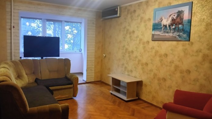 Холодильник, телевизор, два кондиционера, стиральная машинка, бойлер, газовая плита, микроволновая печь, посуда, интернет. Всего 6 спальных мест (двуспальная кровать, раскладной угловой диван, детская раскладная кровать и раскладное кресло).