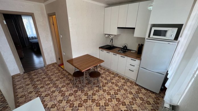 Апартамент в частном доме на втором этаже. Все удобства. Есть стиральная машинка общего пользования в бытовой комнате. Перед апартаментом есть столик на балконе (балкон общий).