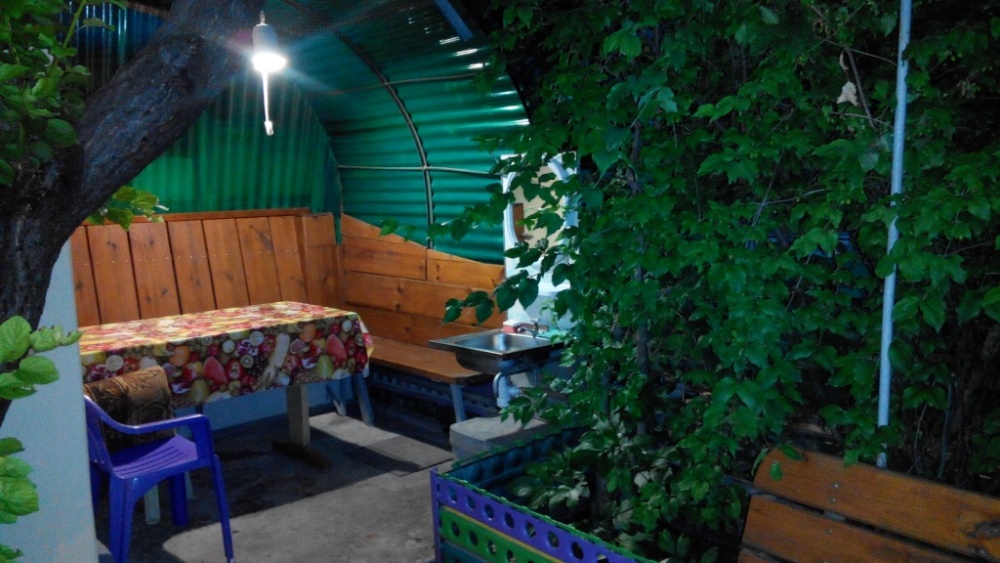 Номер с кухней, газовая плита, мойка, холодильник, полный комплект посуды, в номере мебель, TV, Wi-Fi, вентилятор, утюг, фен. Туалет, душ в доме для 2 номеров, содержится в идеальной чистоте. Для каждого номера своя беседка.