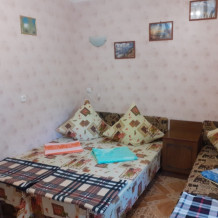 Для размещения гостям предлагаю 2-местные и 3-местные благоустроенные номера. Все они с отдельной кухней, полностью оборудована: газ, холодильник, кухонная мебель, комплект посуды. В комнате, мебель, телевизор, вентилятор, утюг, фен. Санузел общий на два номера. Содержится в идеальной чистоте.