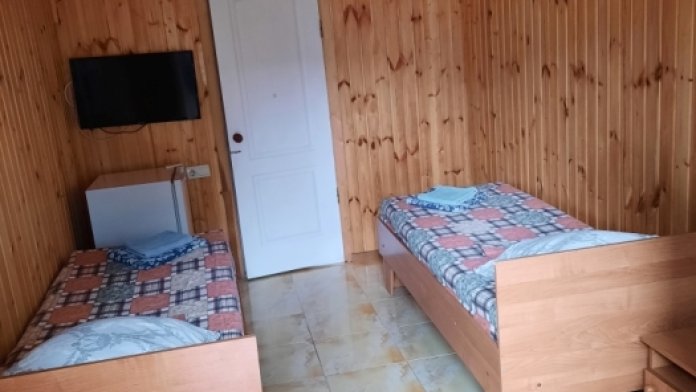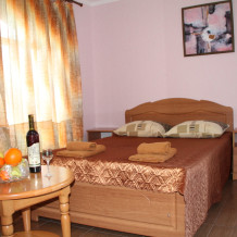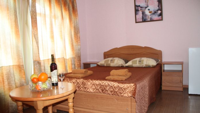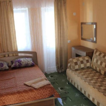Номер в 2-этажном корпусе «Карина». Однокомнатный 20 м2 + небольшой балкон 1.5х 2.0. Рассчитан на 2 гостей. Допускается 1 доп. место. В номере двухспальная 140х200 или два спринг-бокса 90х200, раскладной диван 120х190. Шкаф, тумбочки, комод, стулья, ТВ, холодильник,