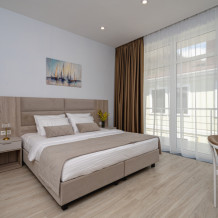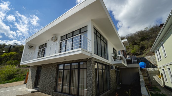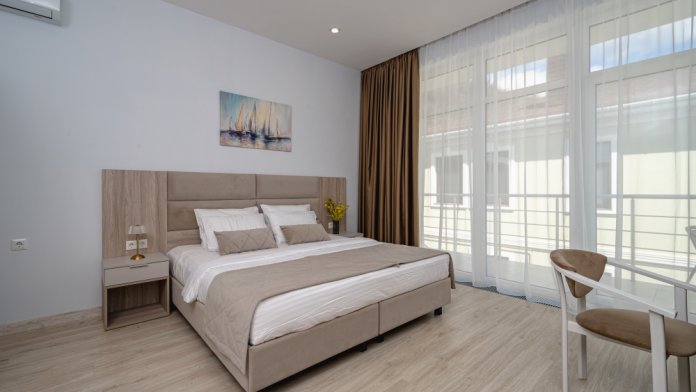 Современный двухэтажный дом предлагает просторные номера и 2-комнатные Апартаменты от 21 кв. м, рассчитанные на комфортное размещение 2-4 человек. Просторные апартаменты и уютные номера с панорамными окнами наполняются светом и открывают захватывающий вид на море и гору Аю-Даг.