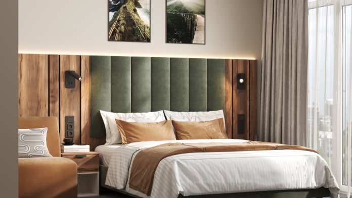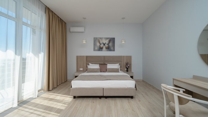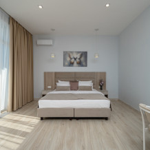 Светлый номер с панорамными окнами, наполненный морским воздухом и солнечным светом, делают пространство по-настоящему комфортным.