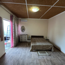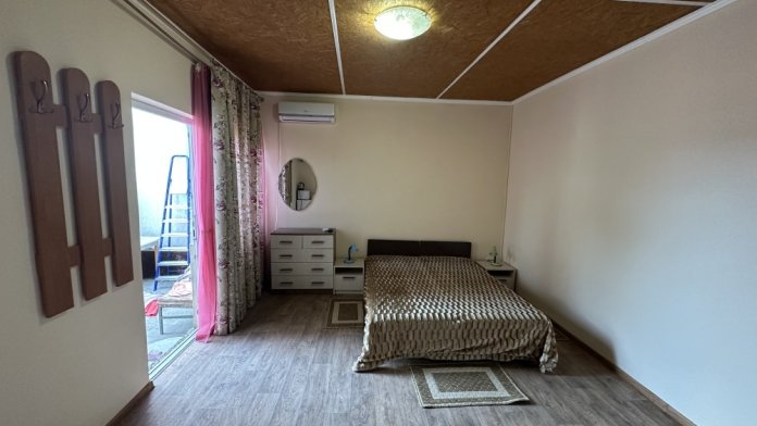 В домике есть две комнаты со всеми удобствами: комфортные спальные места, постельное белье, полотенце, фен, шкаф, большое зеркало, телевизор, кондиционер, сеть Wi-Fi.