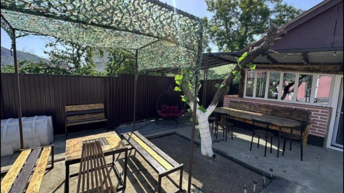 Уютный деревянный дом, в частном секторе, цветущий двор, где можно хорошо отдохнуть и пожарить шашлык. Дом находиться в спальном районе, очень близко расположены магазины, до моря 15-20 минут, рядом аквапарк, центр.