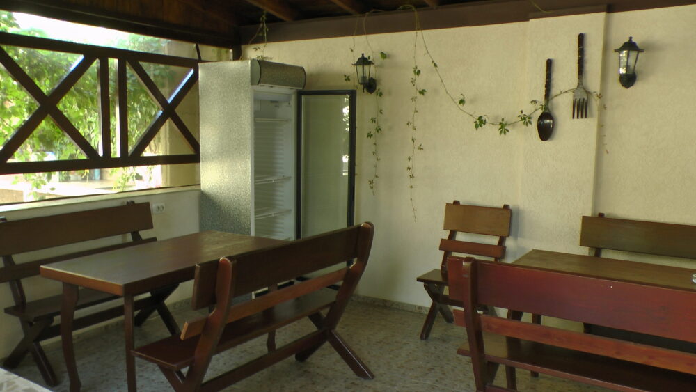 В номерах современная деревянная мебель, выдержанная в едином стиле. Кровати с ортопедическими матрасами, раскладные диванчики, встроенный шкаф с высокими полками для размещения чемоданов, столик с табуретками, прикроватные полочки.