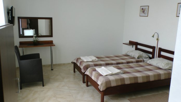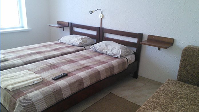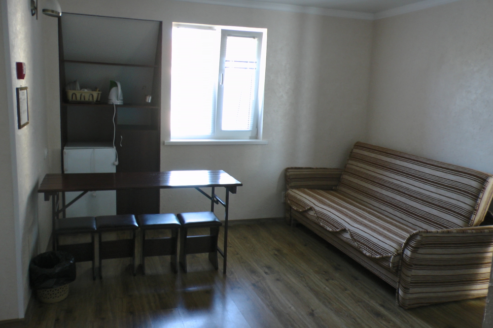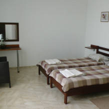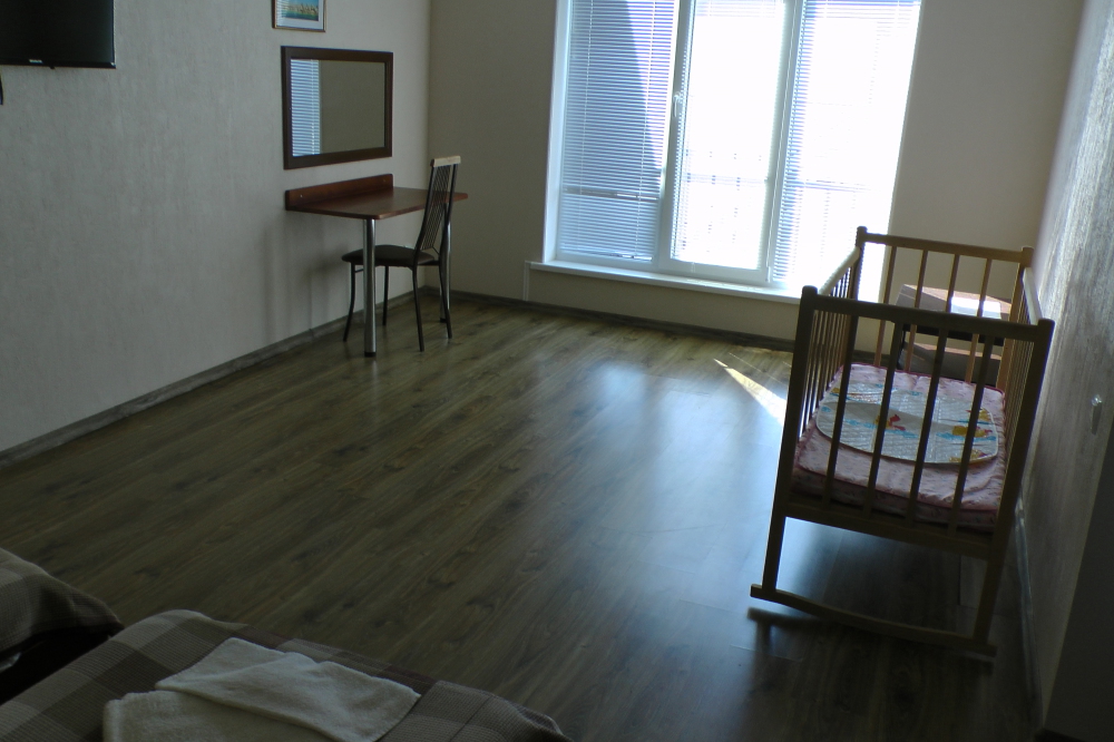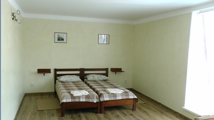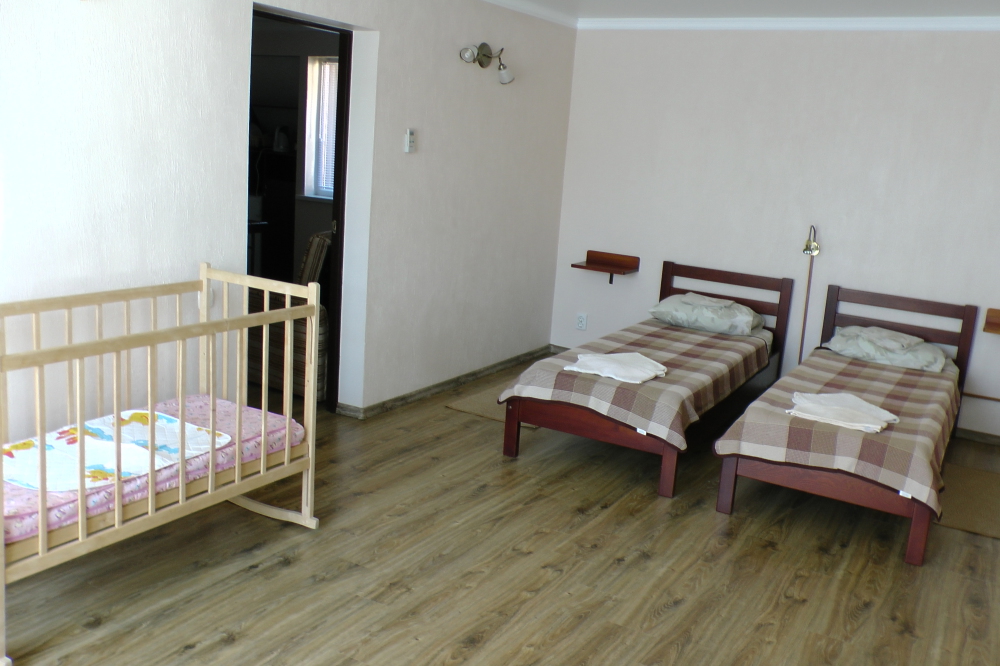 В номерах современная деревянная мебель, выдержанная в едином стиле. Кровати с ортопедическими матрасами, раскладные диванчики, встроенный шкаф с высокими полками для размещения чемоданов, столик с табуретками, прикроватные полочки - такой стандартный набор мебели расположен в номере. В санузлах однокомнатных номеров расположены душевые поддоны, туалет и умывальник, в двухкомнатных номерах – душевые кабины, туалет и умывальник. В каждом номере -фен, туалетные принадлежности, тапочки.На окнах -москитные сетки. Возле каждого номера- раздвижные вешалки для белья и полотенец.Номера оборудованы противопожарной сигнализацией.