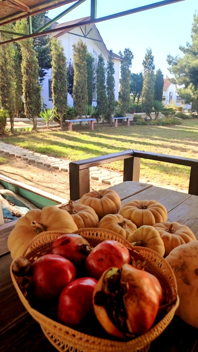 Территория огорожена, оснащена видеонаблюдением и закрыта для посторонних. Для детей есть: батут, бассейн, детская площадка. К услугам гостей – мангал, беседка, настольный теннис, парковка. На территории много декоративных и плодовых деревьев, хвойных растений.