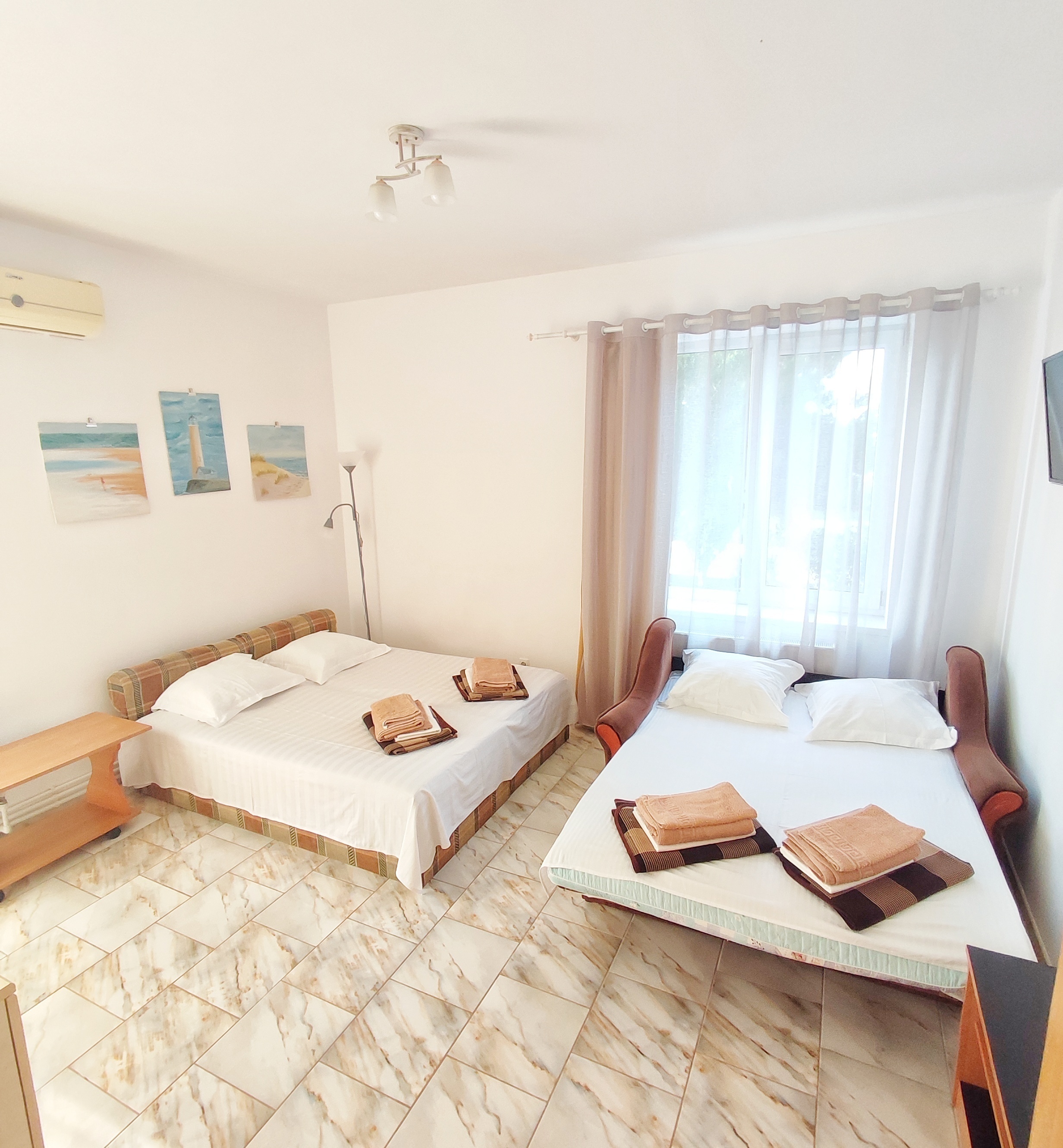 Всего в отеле 8 номера нескольких категорий: Стандарт и Семейный. Каждый номер оснащен: кроватью, кондиционером, телевизором, холодильником, собственной ванной комнатой.