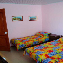 Деревянный домик может принять до 4 отдыхающих. Он меблирован деревянными кроватями, тумбочками, и шкафом. Как и во всех номерах есть телевизор, холодильник, кондиционер, душ, умывальник, туалет. Приятное дополнение ко всем удобствам - веранда перед входом.