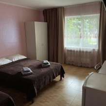 - Стандарт – однокомнатный 3,4-местный) номер 20 м2 без балкона на первом этаже со всеми удобствами, TV, холодильник, чайник, кондиционер.