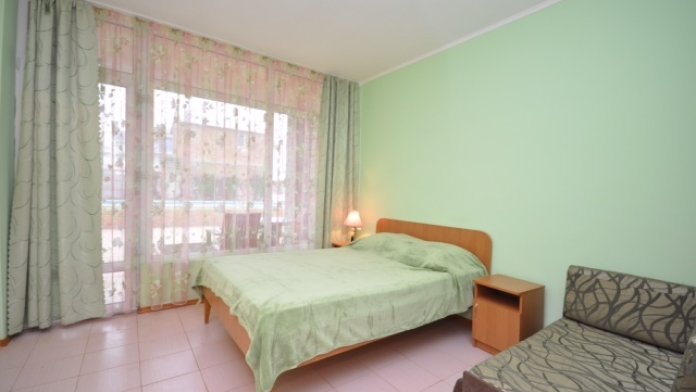 Номер люкс студия 4-местный. Второй этаж, есть лоджия с видом на бассейн.