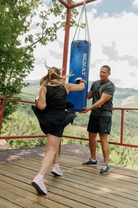 А еще на территории проходят фитнес туры «Все включено» с походами в горы и лес, к которым также можно присоединиться.