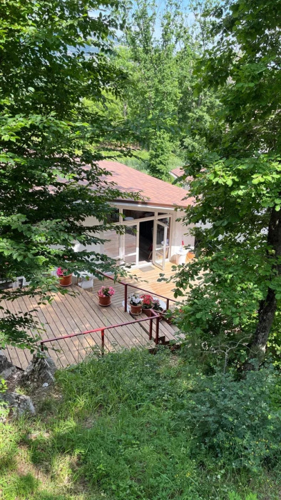 Общая площадь 40 м. В домике 2 комнаты. Просторная терраса с выходом в дубовый лес или балкон с видом на горы или лес.