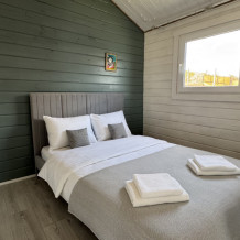 Вместимость коттеджа до 6 человек: по 2 основных спальных места в спальнях на кроватях и 2 дополнительных на диване. Полная комплектация коттеджа сделает Ваш отдых комфортным: необходимая мебель, бытовая техника, посуда и кухонные приборы, а также комплекты белоснежных полотенец, халатов и косметических принадлежностей для каждого гостя.