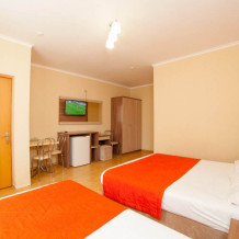 в номере двуспальная и односпальная кровать, телевизор, холодильник, кондиционер, сейф. Удобства в номере. Ежедневная уборка. WiFi
