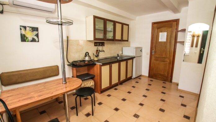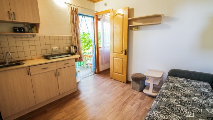 Гостевой дом находится на первой линии в 200 метрах от моря и удален от центра на 1 км, здесь мало шума, нет суеты, обеспечен спокойный отдых.