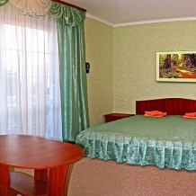 Вам обязательно понравятся солнечные цвета в оформлении номера, комфортная мебель, кондиционер, который спасает в летнюю жару, и другая современная техника. В каждом номере есть балкон, доступ в интернет. Возможно предоставление дополнительного места.