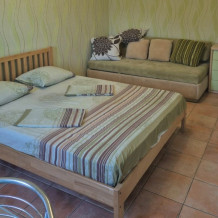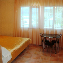 Наш гостевой дом предлагает номера на любой вкус. Это двух, трех, четырехместные номера со всеми удобствами оснащенные сплит системами и кабельным телевидением. Конечно, же есть Wi-Fi. Возле номеров находятся отдельные балконы для каждого номера, озелененные, с прекрасным видом на горную гряду. В некоторых номерах есть кухня.