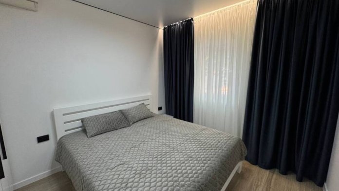Дом одноэтажный, с 2 комнатами и дорогим современным ремонтом. Спальная комната оборудована удобной двуспальной кроватью и вместительным шкафом для хранения вещей. Гостиная оснащена большим диваном и телевизором с кабельным тв. Кухня просторная, с современной бытовой техникой, включая холодильник и плиту. Санузел совмещённый, оформлен в том же стиле, что и остальная часть дома, с душевой кабиной и стиральной машиной.