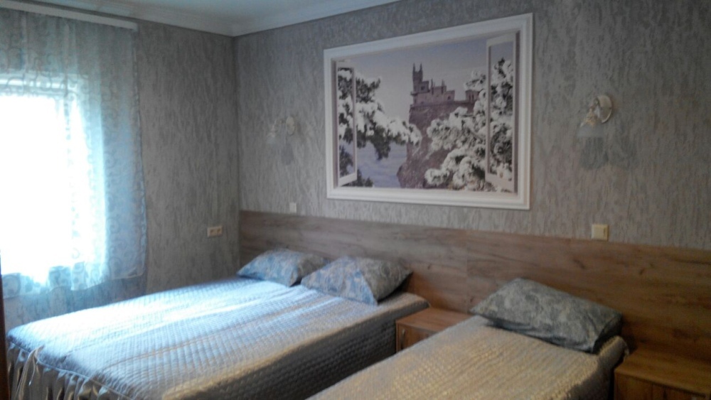 Для размещения предлагают 4 номера «Зима», «Весна», «Лето», «Осень». Номера рассчитаны для 3-4 человек + дополнительное место - детская кроватка. Каждый оснащён кухней и санузлом. Кухня укомплектована полностью: электроплита, холодильник, свч, мультиварка, посуда. В санузле стиральная машина, умывальник, унитаз, душевая панель, бойлер. Горячая и холодная вода круглосуточно. При каждом номере свой дворик с мангалом и зоной отдыха под навесом. У всех номеров свой отдельный вход. Есть возможность объединения 2 номеров и двориков. Предоставляется детская кровать и стульчик для кормления. Телевизор и кондиционер в комнате. Белье постельное и полотенца (3 шт. на каждого) предоставляются и отдельно пляжные полотенца. Отопление электрическое (конвекторы).