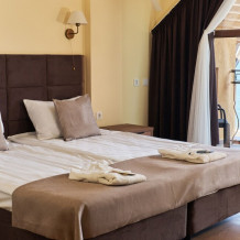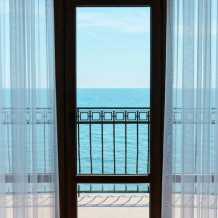 Двухкомнатный номер с одной двуспальной кроватью или двумя раздельными кроватями и диваном. В номере есть собственный балкон с видом на море и горы. Номер рассчитан на проживание до 4 человек.