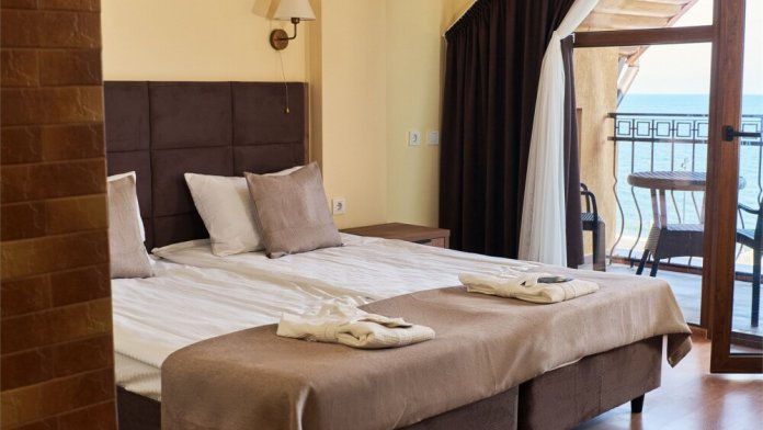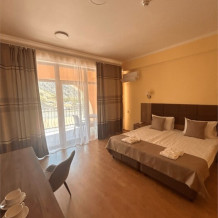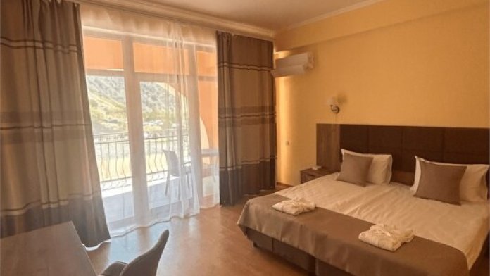 Однокомнатный номер с одной двуспальной кроватью или двумя раздельными кроватями и балконом с видом на море и горы. Номер рассчитан на проживание до 3 человек.