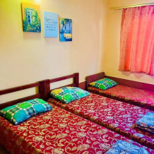 В номерах есть собственные удобства и душ, маленькая кухня, холодильник.