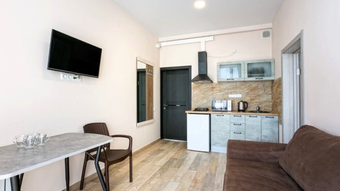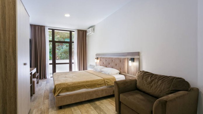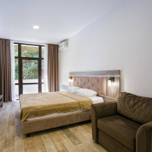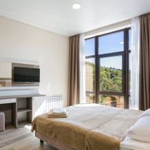Два номера «Комфорт», 1-комнатные с балконами, расположены на 2 и 3 этажах, площадь 26 кв.м, гостей 2+1.