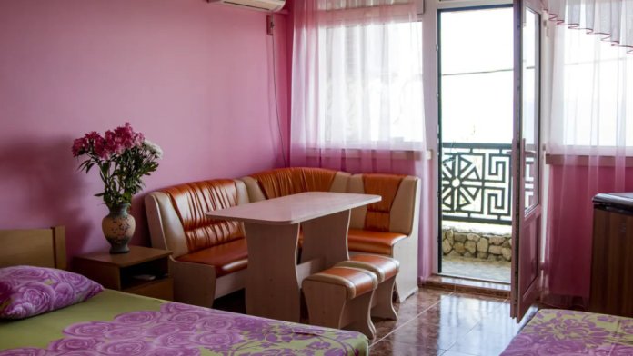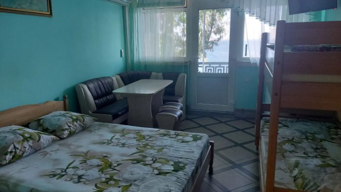 Номер с видом на море. Туалет в номере, душ в номере. Новая мебель, современный ремонт. Номера оборудованы холодильником, телевизором, кондиционером. Действует Wi-Fi.