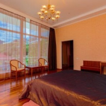 Двухкомнатный номер с двумя ванными комнатами, расположен в «Итальянском дворике», терраса в уютном зеленом оазисе. Идеальное место для тихого уютного отдыха.