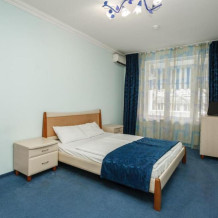 Номера располагаются в отдельном трехэтажном корпусе на утопающей в зелени территории отеля. В номере: 2 односпальные кровати, современная мебель – комод, журнальный столик, встроенный шкаф для одежды. В каждом номере кондиционер, холодильник, телевизор с многоканальным телевидением. Санузел с душем оснащен современной сантехникой, горячая и холодная вода круглосуточно В распоряжении гостей полотенца. В номерах 1-го этажа вместо балкона, небольшая веранда при входе, с видом на территорию отеля.