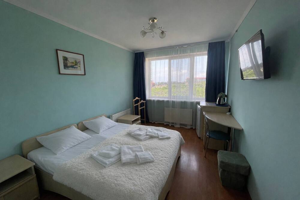 Однокомнатный номер с лоджией рассчитан на двух человек. В номере есть кондиционер, телевизор с кабельным телевидением, сейф, Wi-Fi, санузел с душевой кабиной и феном. Горячая и холодная вода подаются круглосуточно. Ежедневная влажная уборка. В вашем распоряжении кухня для самостоятельного приготовления пищи, мангал, садовый камин и парковка для машин на закрытой территории. С лоджии открывается вид на море.