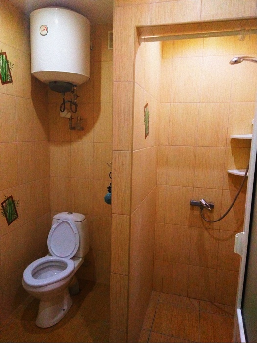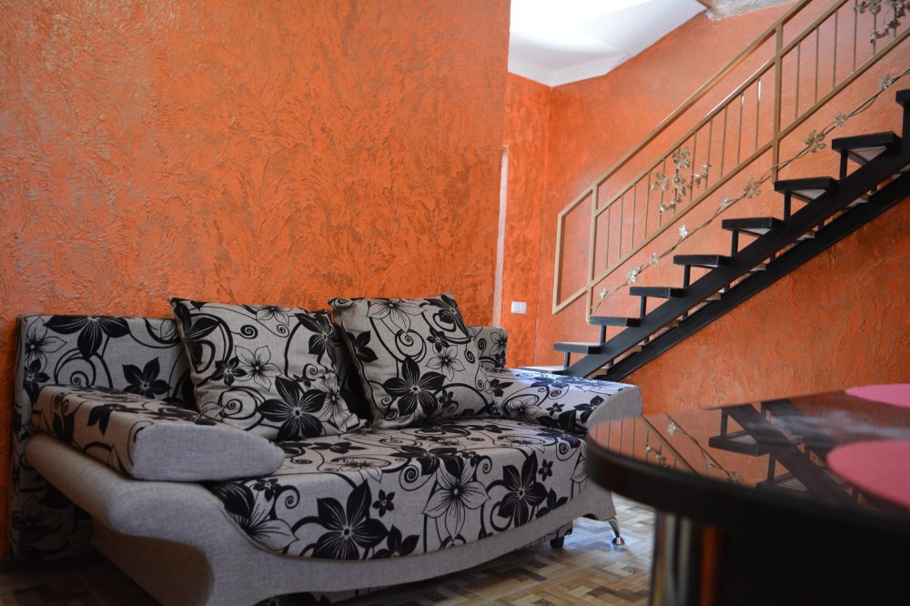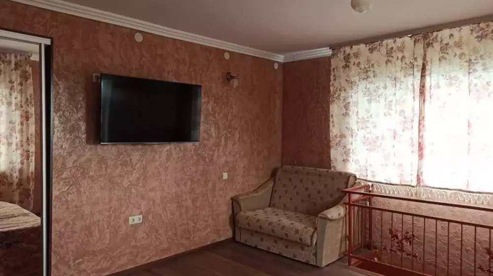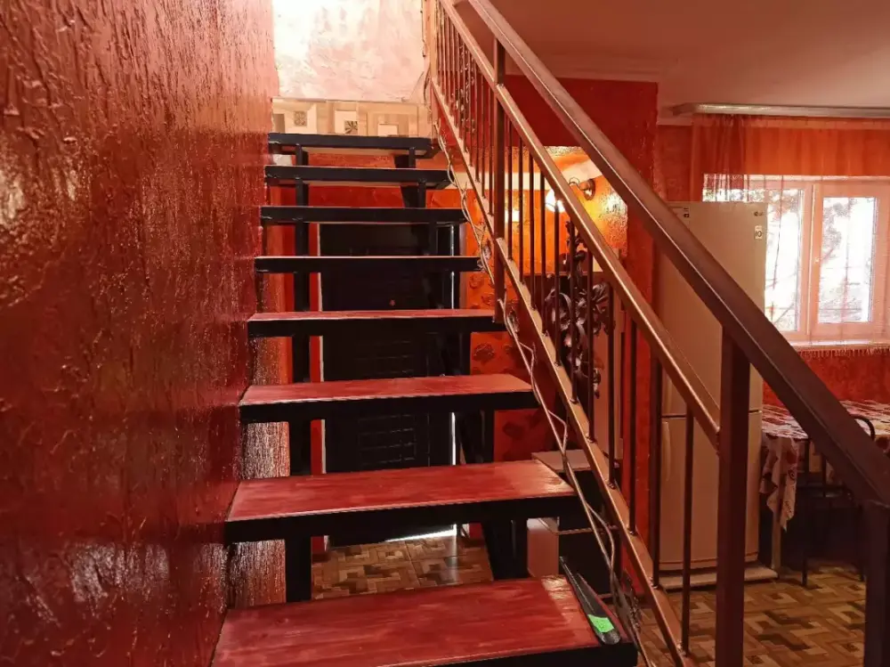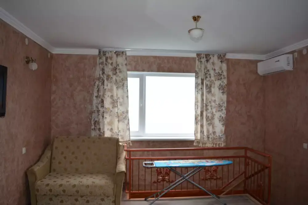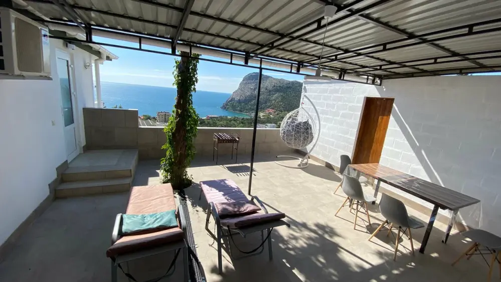 Двухэтажный номер с видом на море на 5 человека со всеми удобствами. 1 этаж: кухня, санузел. На кухне расположены: диван, кухонный столик, холодильник, прихожая. Большой дворик.